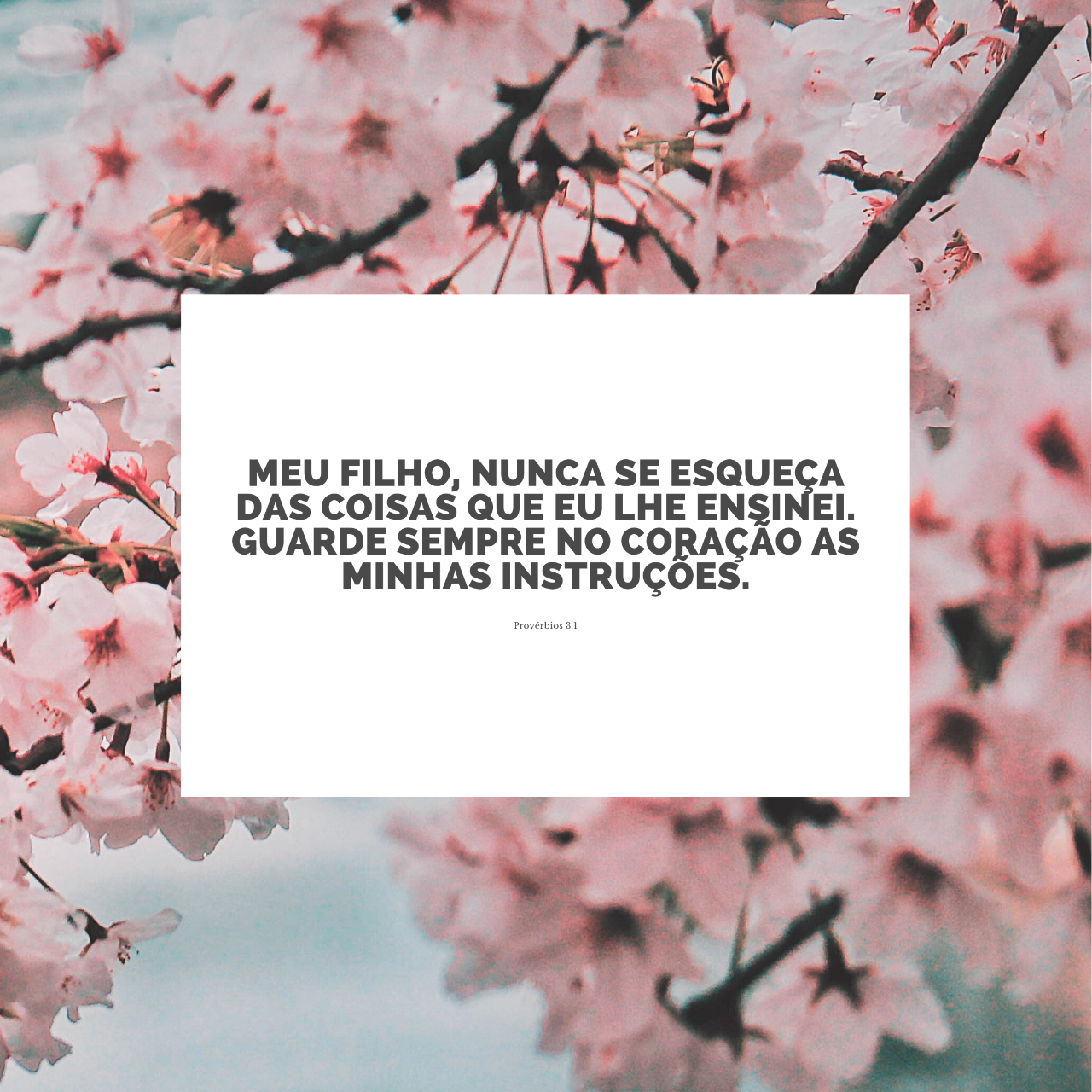 1. Meu filho, nunca se esqueça das coisas que eu lhe ensinei. Guarde sempre no coração as minhas instruções. Se você seguir essas instruções, a sua vida será prolongada por muitos anos e isso lhe dará prosperidade e paz.